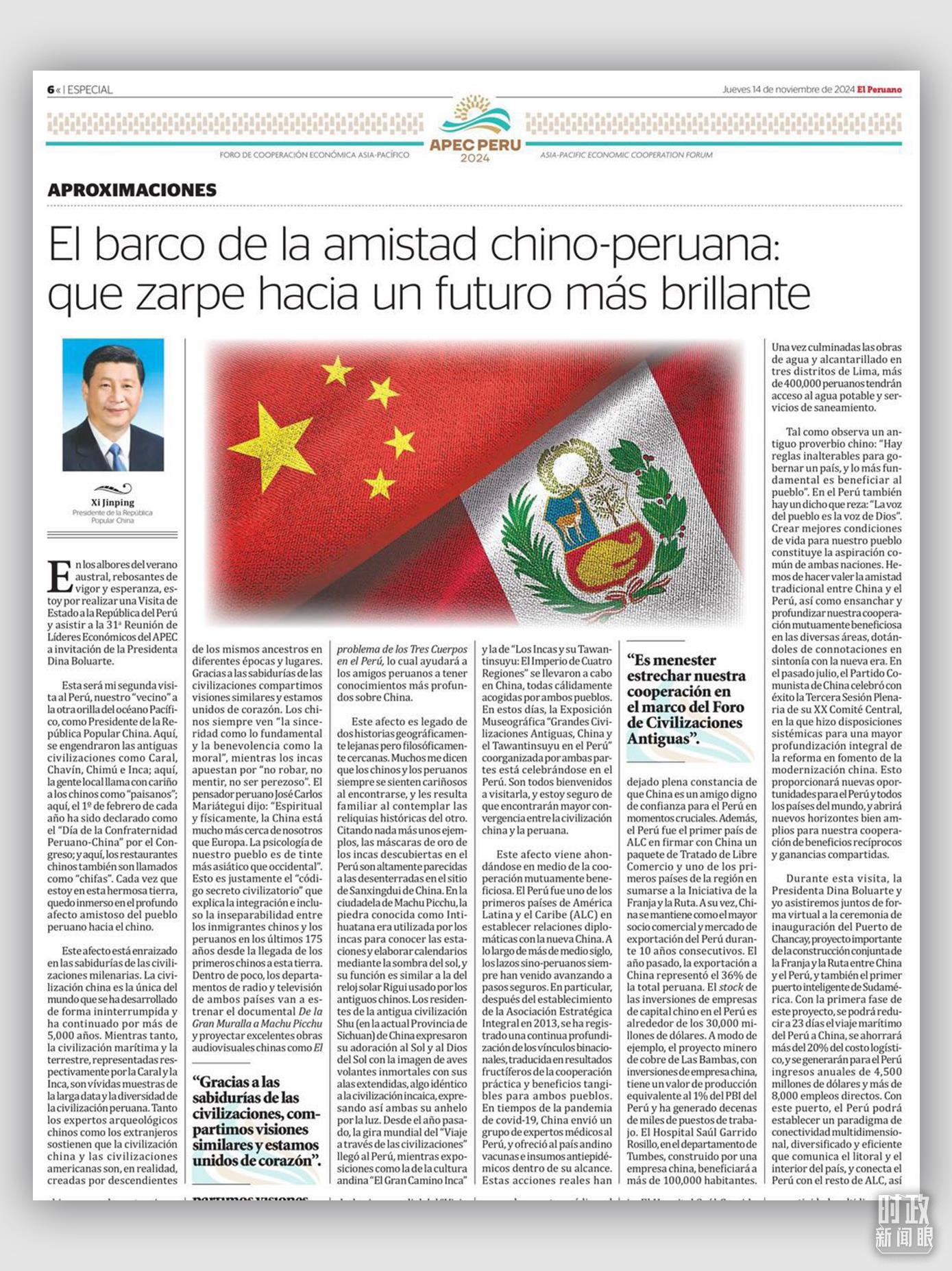 “我謹(jǐn)向您發(fā)出最熱情的邀請,希望您撥冗出席2024年亞太經(jīng)合組織(APEC)領(lǐng)導(dǎo)人非正式會議,并對秘魯再次進(jìn)行國事訪問?!比ツ?1月,秘魯總統(tǒng)博魯阿爾特在舊金山向習(xí)主席發(fā)出誠摯邀請。
