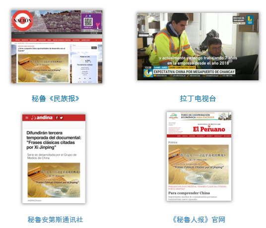 《平“語”近人——習(xí)近平喜歡的典故》第三季(西班牙語版)即日起在秘魯國家廣播電視臺、秘魯電視聯(lián)播網(wǎng)、秘魯廣播節(jié)目集團電視端、秘魯安第斯新聞臺、泛美電視臺、拉丁電視臺、秘魯《民族報》等多平臺落地播出。14日,秘魯最具影響力的官方報紙《秘魯人報》及其官網(wǎng)刊發(fā)節(jié)目在秘魯落播的消息。秘魯安第斯通訊社、《共和國報》、秘魯EXITOSA電臺、秘魯消息網(wǎng)以及拉美新聞聯(lián)盟官網(wǎng)等拉美主流媒體播發(fā)相關(guān)報道。
