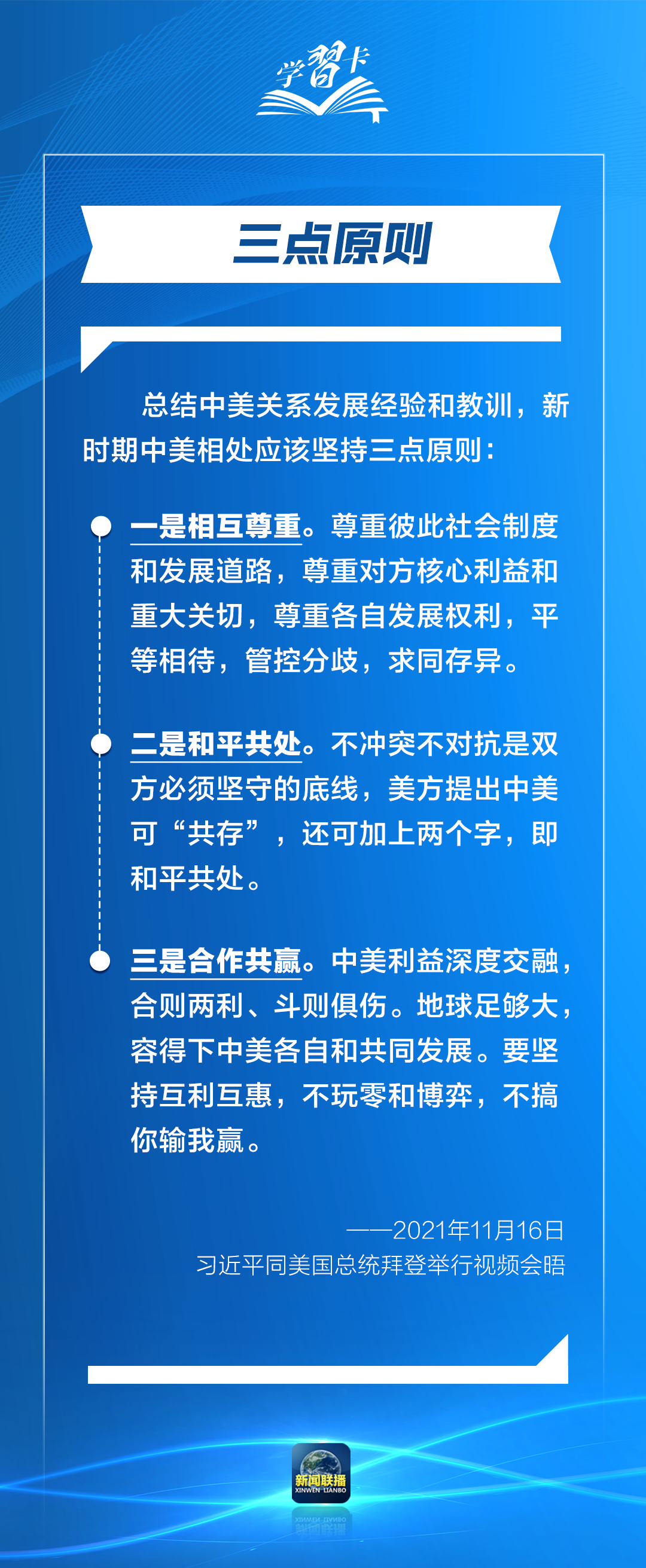 新時(shí)期新形勢(shì)下,中美關(guān)系如何發(fā)展?中美相處應(yīng)該堅(jiān)持哪些原則?習(xí)主席近年來(lái)作出一系列重要論述,一起學(xué)習(xí)↓↓↓