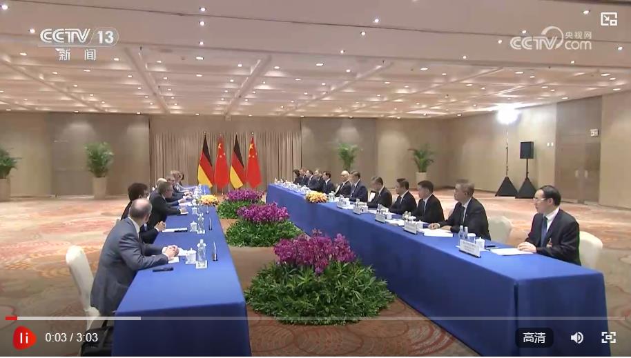 習(xí)近平指出,今年4月你訪問(wèn)中國(guó),我們進(jìn)行了坦誠(chéng)深入、富有成效的交流。半年多來(lái),兩國(guó)在綠色發(fā)展、可持續(xù)交通、對(duì)非洲農(nóng)業(yè)合作等領(lǐng)域合作取得重要成果,中德關(guān)系持續(xù)煥發(fā)新的生機(jī)和活力。當(dāng)前,世界百年變局加速演進(jìn),全球發(fā)展處于關(guān)鍵十字路口。中國(guó)和德國(guó)作為世界第二、第三大經(jīng)濟(jì)體和具有重要影響力的大國(guó),要堅(jiān)持從長(zhǎng)遠(yuǎn)和戰(zhàn)略角度鞏固中德全方位戰(zhàn)略伙伴關(guān)系,續(xù)寫(xiě)相互成就的合作故事。