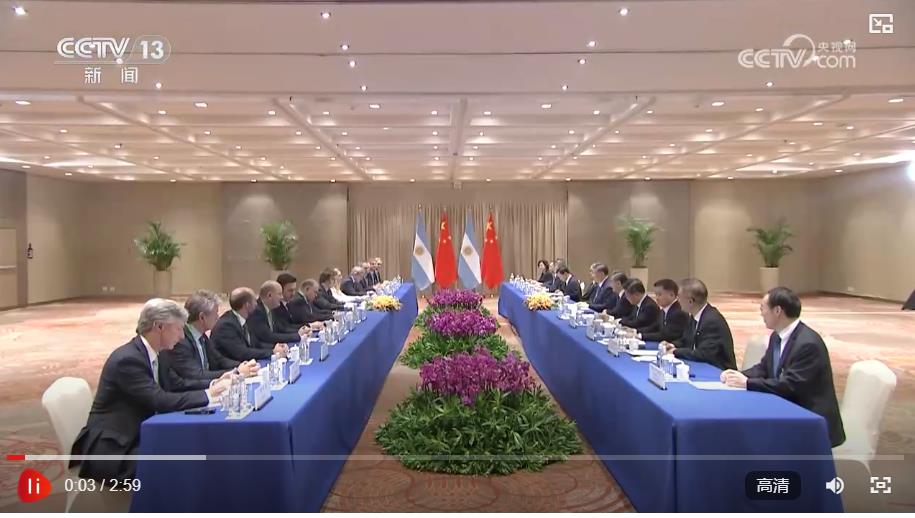 習(xí)近平指出,中阿建交半個多世紀(jì)以來,雙方堅(jiān)持相互尊重、平等相待、互利共贏。中國對阿政策始終面向阿根廷全體人民,中阿合作也造福全體人民。今年是中阿建立全面戰(zhàn)略伙伴關(guān)系10周年,兩國關(guān)系處在承前啟后、繼往開來的重要節(jié)點(diǎn)。中方珍視兩國人民傳統(tǒng)友誼,支持阿方通過改革探索符合本國國情的發(fā)展道路,愿同阿方一道,推動中阿全面戰(zhàn)略伙伴關(guān)系長期穩(wěn)定發(fā)展,更好助力各自國家發(fā)展。