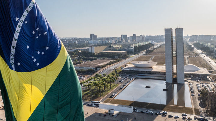 這是2024年7月16日在巴西首都巴西利亞拍攝的國會大廈(無人機照片)。 新華社記者 王天聰 攝