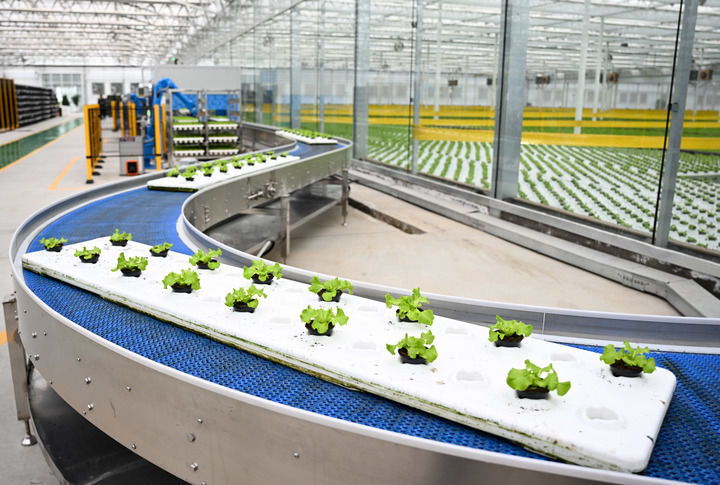 2024年12月12日在內(nèi)蒙古鄂爾多斯市達(dá)拉特旗內(nèi)蒙古現(xiàn)代數(shù)字農(nóng)業(yè)科技產(chǎn)業(yè)園拍攝的生菜苗。新華社記者 貝赫 攝
