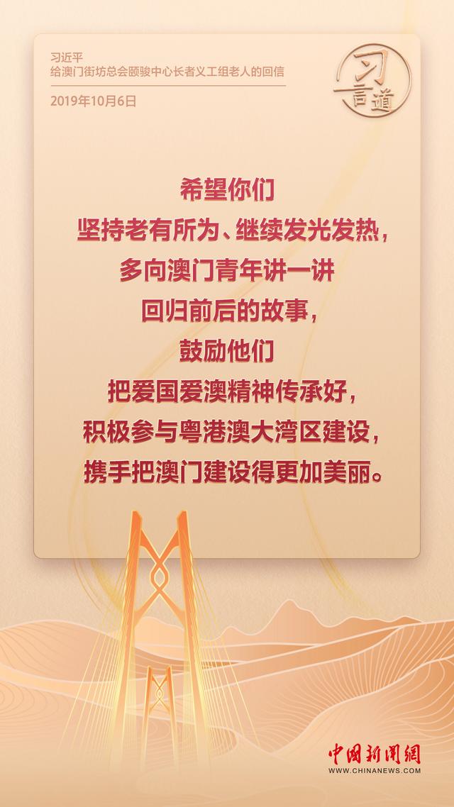 2024年是澳門(mén)回歸祖國(guó)25周年。多年來(lái),習(xí)近平主席始終關(guān)注澳門(mén)經(jīng)濟(jì)社會(huì)發(fā)展、百姓福祉,寄語(yǔ)“澳門(mén)的發(fā)展厚積薄發(fā)、未來(lái)可期”。