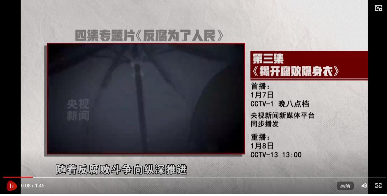 【解說(shuō)詞】《反腐 為了人民》第三集《揭開腐敗隱身衣》,敬請(qǐng)關(guān)注。