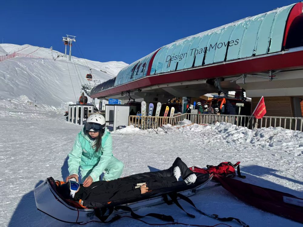 一次巡邏時,帕提曼看到一名雪友橫躺在雪道中間,雪板被甩出很遠,上前查看后發(fā)現(xiàn)其大腿骨折。她立即進行夾板固定、紗布包扎等操作,隨后協(xié)助轉(zhuǎn)運傷員。