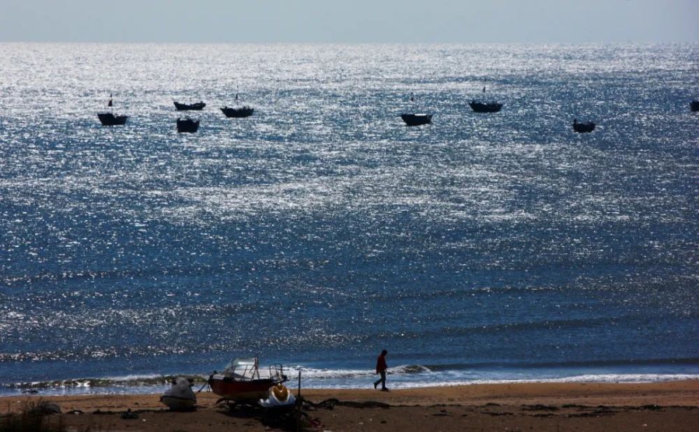 一名男子走在覺(jué)華島的沙灘上。新華社記者 郭求達(dá) 攝