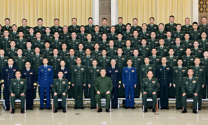 1月24日,中共中央總書記、國家主席、中央軍委主席習(xí)近平到北部戰(zhàn)區(qū)機關(guān)視察慰問,通過視頻看望基層官兵,檢查部隊戰(zhàn)備值班和執(zhí)行任務(wù)情況,代表黨中央和中央軍委,向全體人民解放軍指戰(zhàn)員、武警部隊官兵、軍隊文職人員、預(yù)備役人員和民兵致以誠摯問候和新春祝福。這是習(xí)近平同北部戰(zhàn)區(qū)官兵代表合影留念。