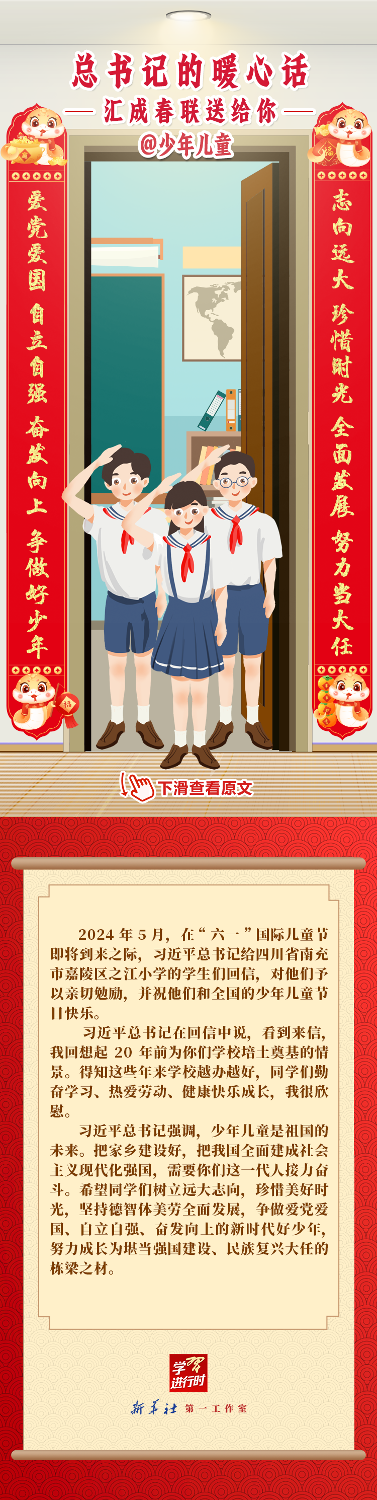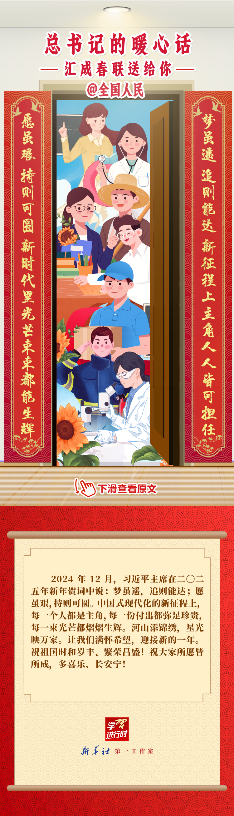 【學習進行時】過春節(jié),貼春聯(lián),寄托人們對新年的美好愿望。過去一年,習近平總書記在不同場合點贊各行各業(yè)奮斗者,說了許多暖心話。新春之際,我們匯編成聯(lián),向新征程上的每一位“主角”致敬,送上新春的祝福。