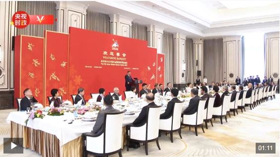 2月7日中午,國(guó)家主席習(xí)近平和夫人彭麗媛在黑龍江省哈爾濱市太陽島賓館舉行宴會(huì),歡迎來華出席哈爾濱第九屆亞洲冬季運(yùn)動(dòng)會(huì)開幕式的國(guó)際貴賓。