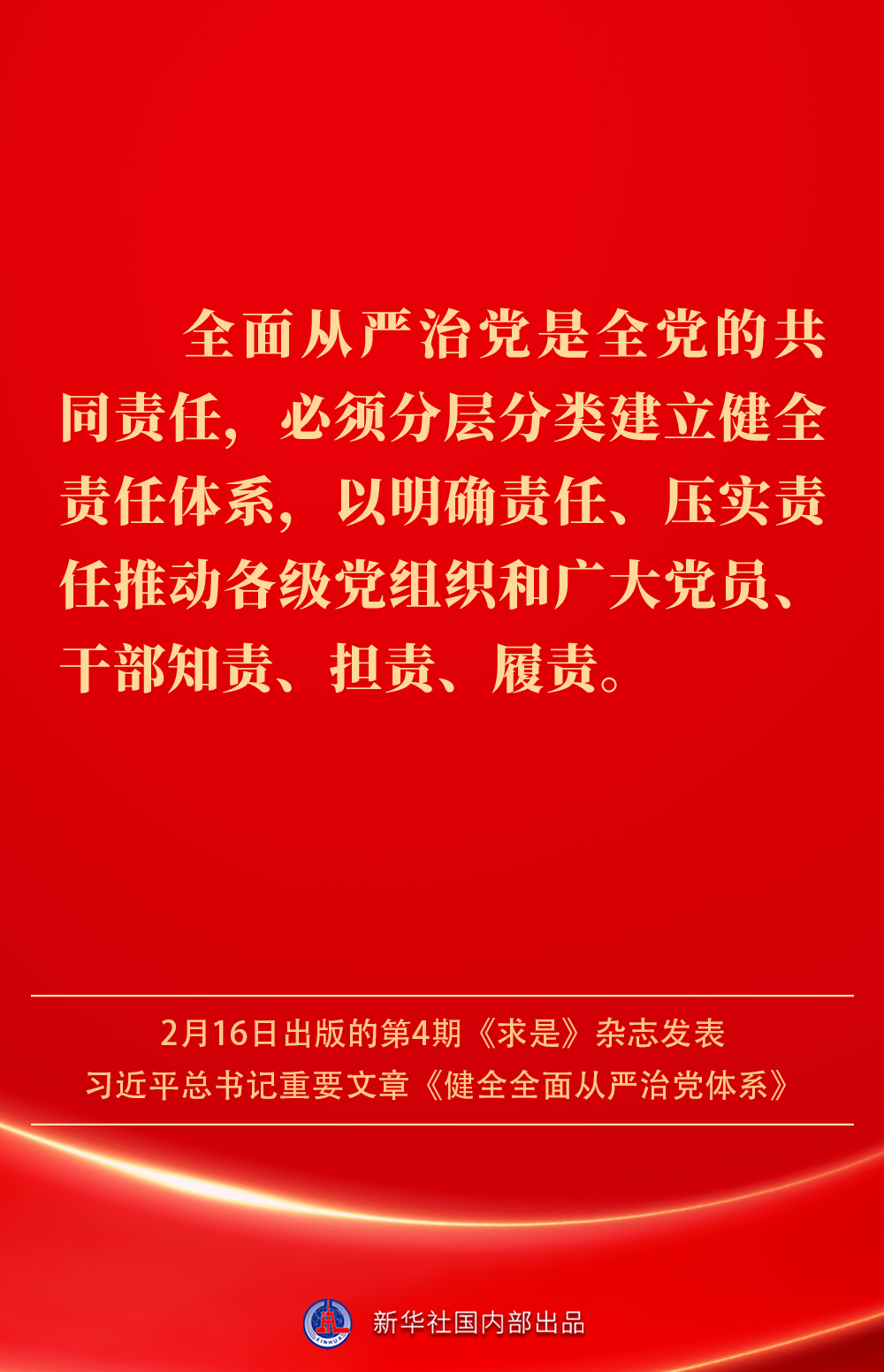 2月16日出版的第4期《求是》雜志發(fā)表習近平總書記重要文章《健全全面從嚴治黨體系》。如何進一步健全要素齊全、功能完備、科學(xué)規(guī)范、運行高效的全面從嚴治黨體系?習近平總書記闡明要旨——