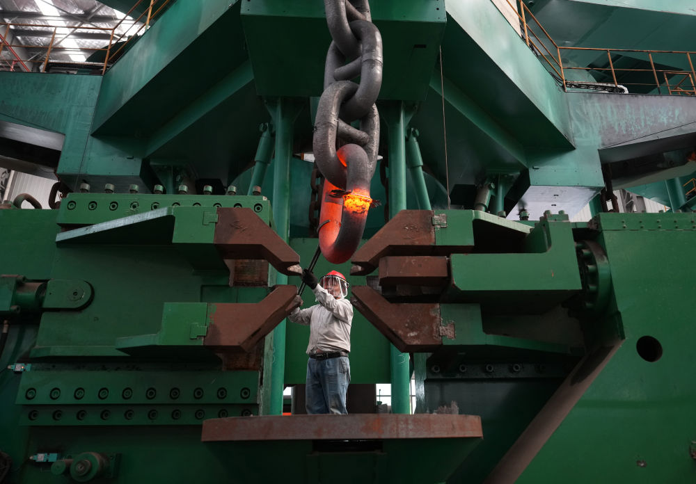 2024年6月4日,江蘇泰州靖江市江蘇亞星錨鏈股份有限公司工人在生產(chǎn)車間作業(yè)。該公司前身是40多年前創(chuàng)辦于靖江東興鎮(zhèn)的一個(gè)小廠,經(jīng)過多年發(fā)展,逐漸成長為國家級制造業(yè)單項(xiàng)冠軍示范企業(yè)。目前該公司船用鏈條全國市占率達(dá)70%,全球市占率超50%,業(yè)務(wù)已拓展到海洋鉆井平臺(tái)、海洋生產(chǎn)平臺(tái)、海上風(fēng)電設(shè)施的系泊錨鏈等領(lǐng)域。