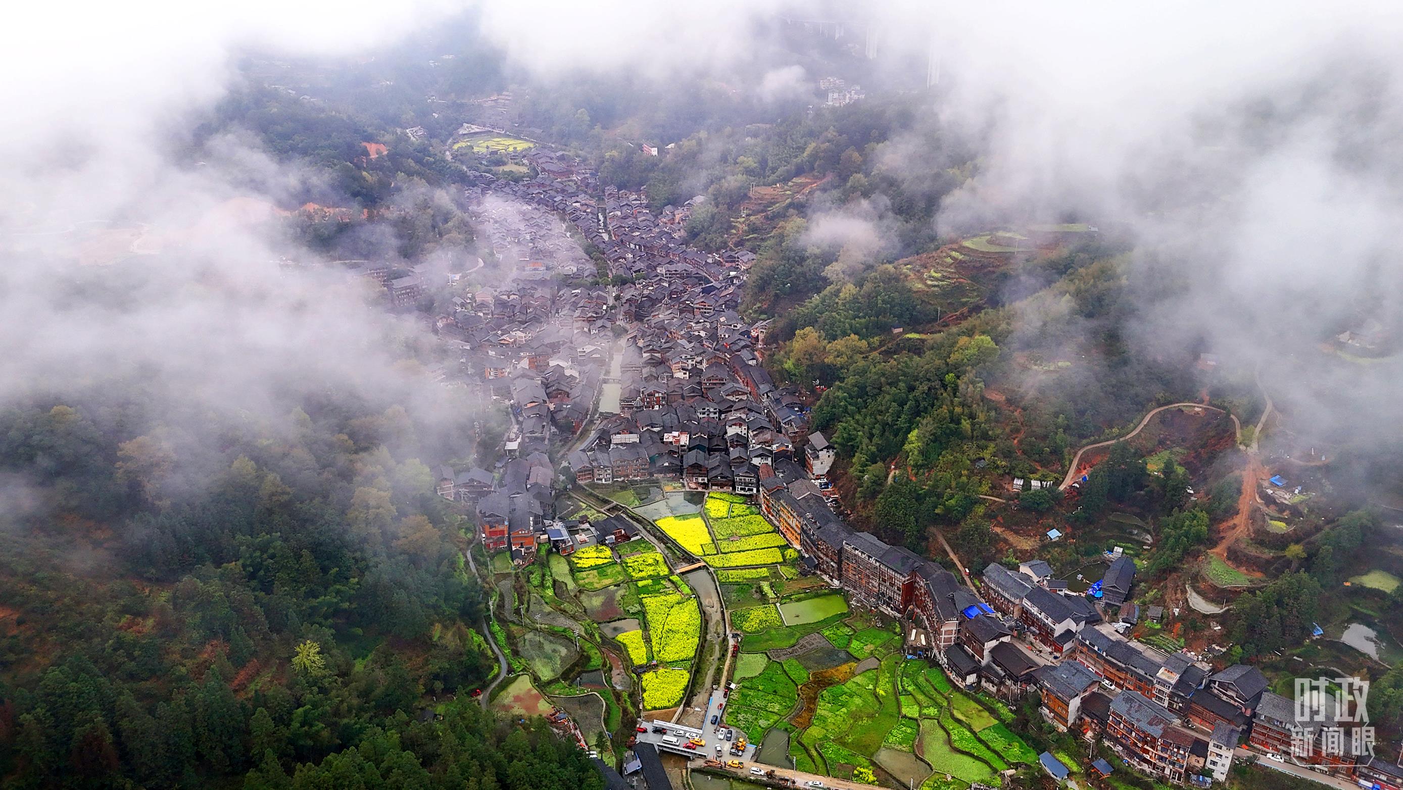 春日的肇興侗寨,油菜花競(jìng)相綻放。(總臺(tái)央視記者程鋮拍攝)