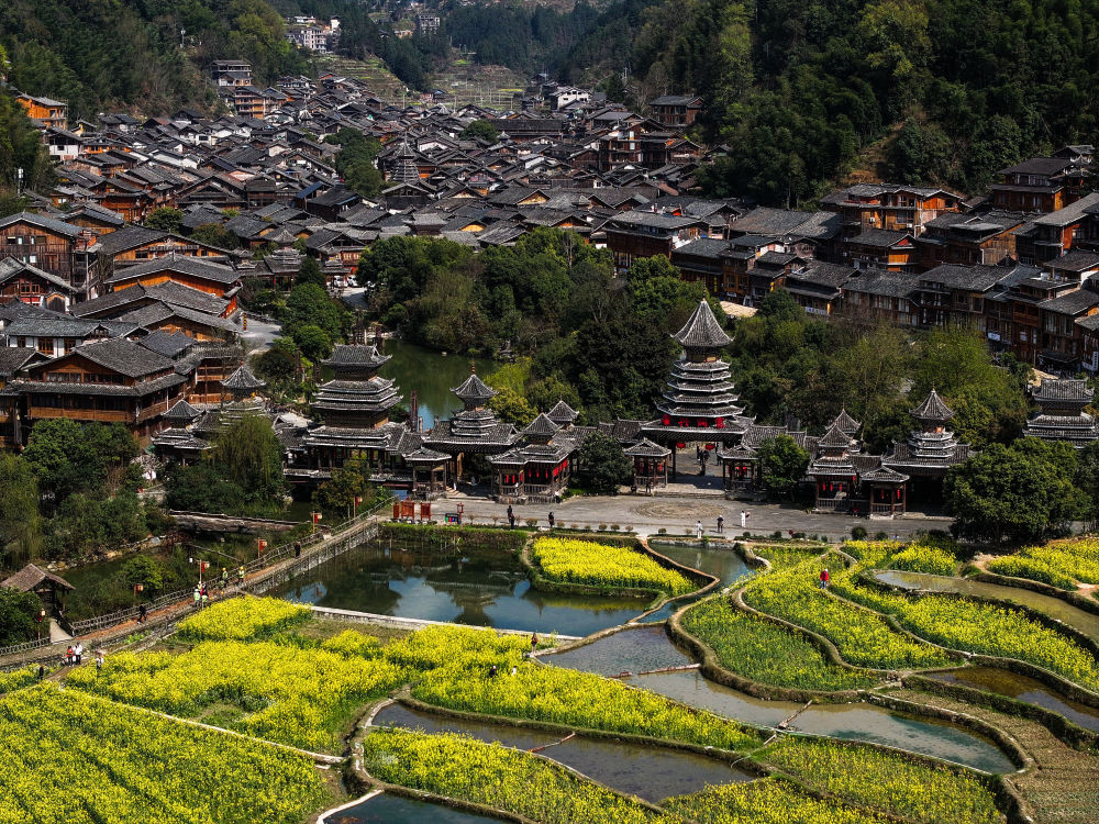 這是2025年3月18日拍攝的貴州省黎平縣肇興侗寨(無人機照片)。新華社記者 楊文斌 攝