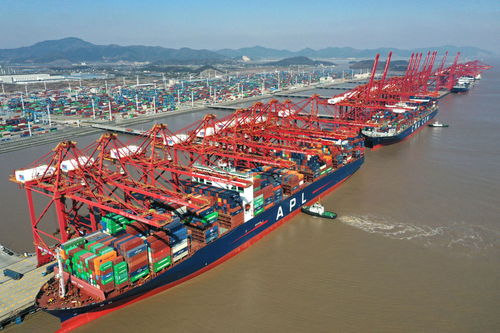貨輪??吭谡憬瓕幉ㄖ凵礁勖飞礁蹍^(qū)碼頭(2024年1月24日攝,無人機照片)。新華社記者 黃宗治 攝
