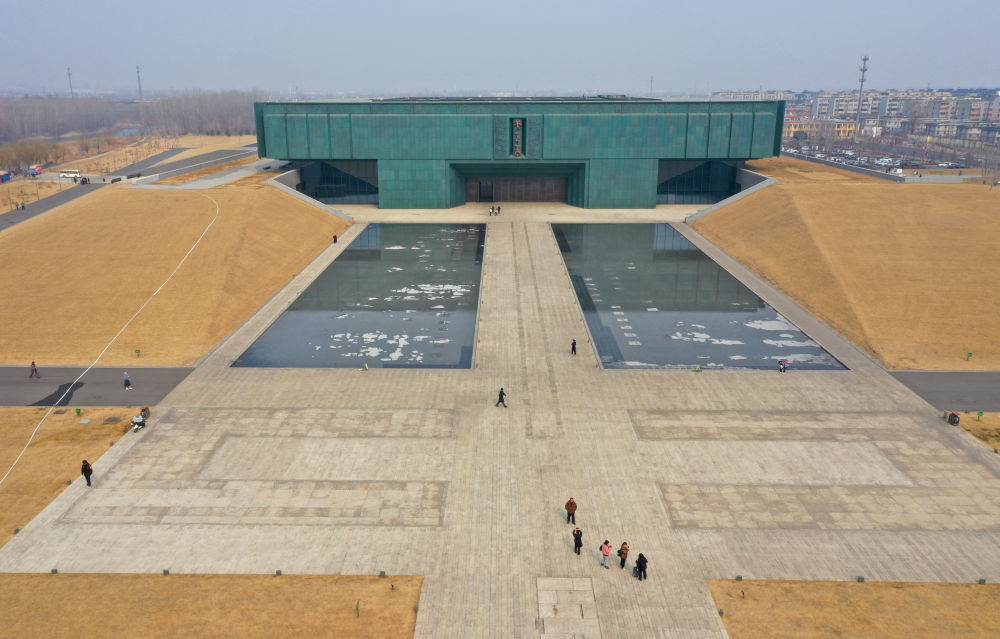 “商邑翼翼,四方之極?!蔽挥谔猩綎|麓的河南安陽小屯村一帶,是殷墟遺址所在地。三千多年前,繁盛的城市文明、舉世矚目的文字文明以及高度發(fā)展的手工業(yè)等,共同構(gòu)筑了早期中國的華彩篇章。2024年2月,殷墟博物館新館正式開館,成為首個全景式展現(xiàn)商文明的國家重大考古專題博物館(2025年2月21日攝,無人機(jī)照片)。