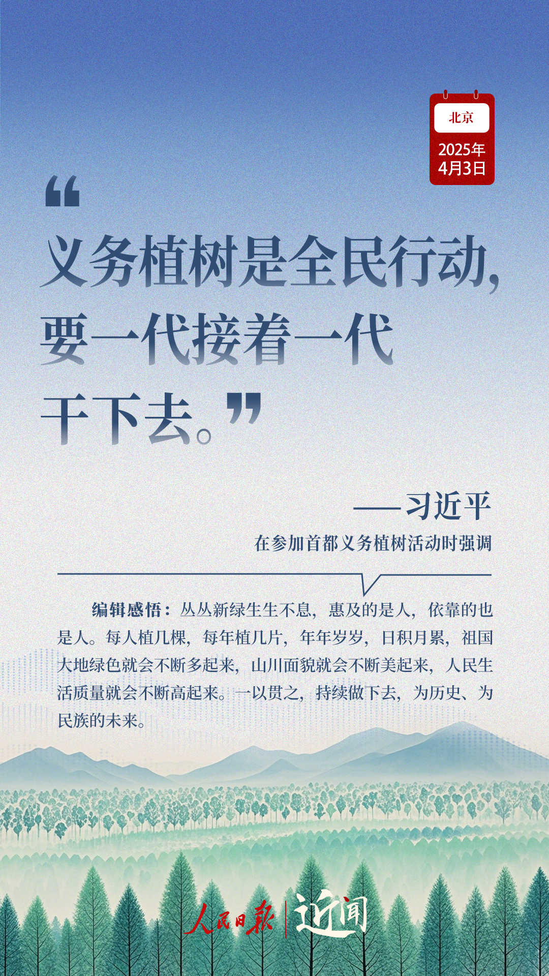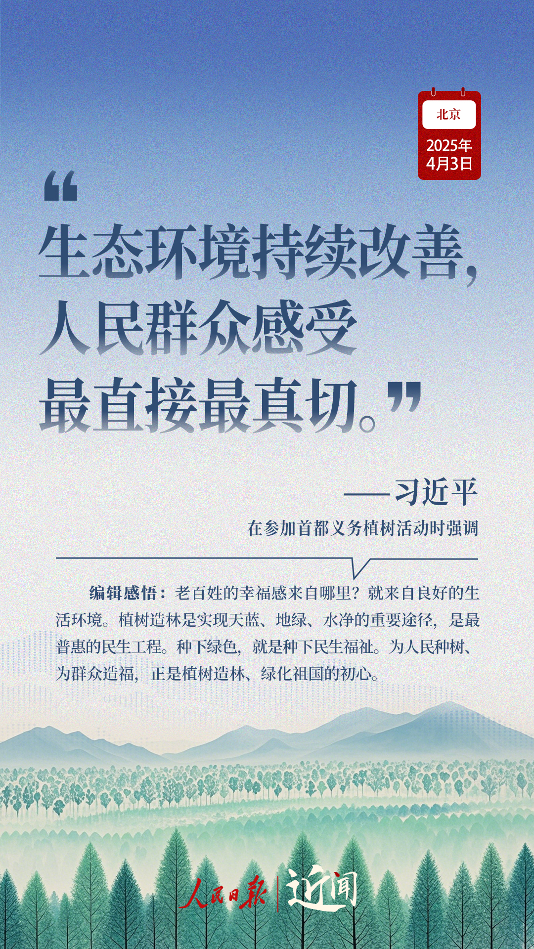 “生態(tài)環(huán)境持續(xù)改善,人民群眾感受最直接最真切?!薄傲x務(wù)植樹是全民行動(dòng),要一代接著一代干下去?!痹谥矘洮F(xiàn)場(chǎng),從這些話語讀懂一份堅(jiān)持、一種情懷。