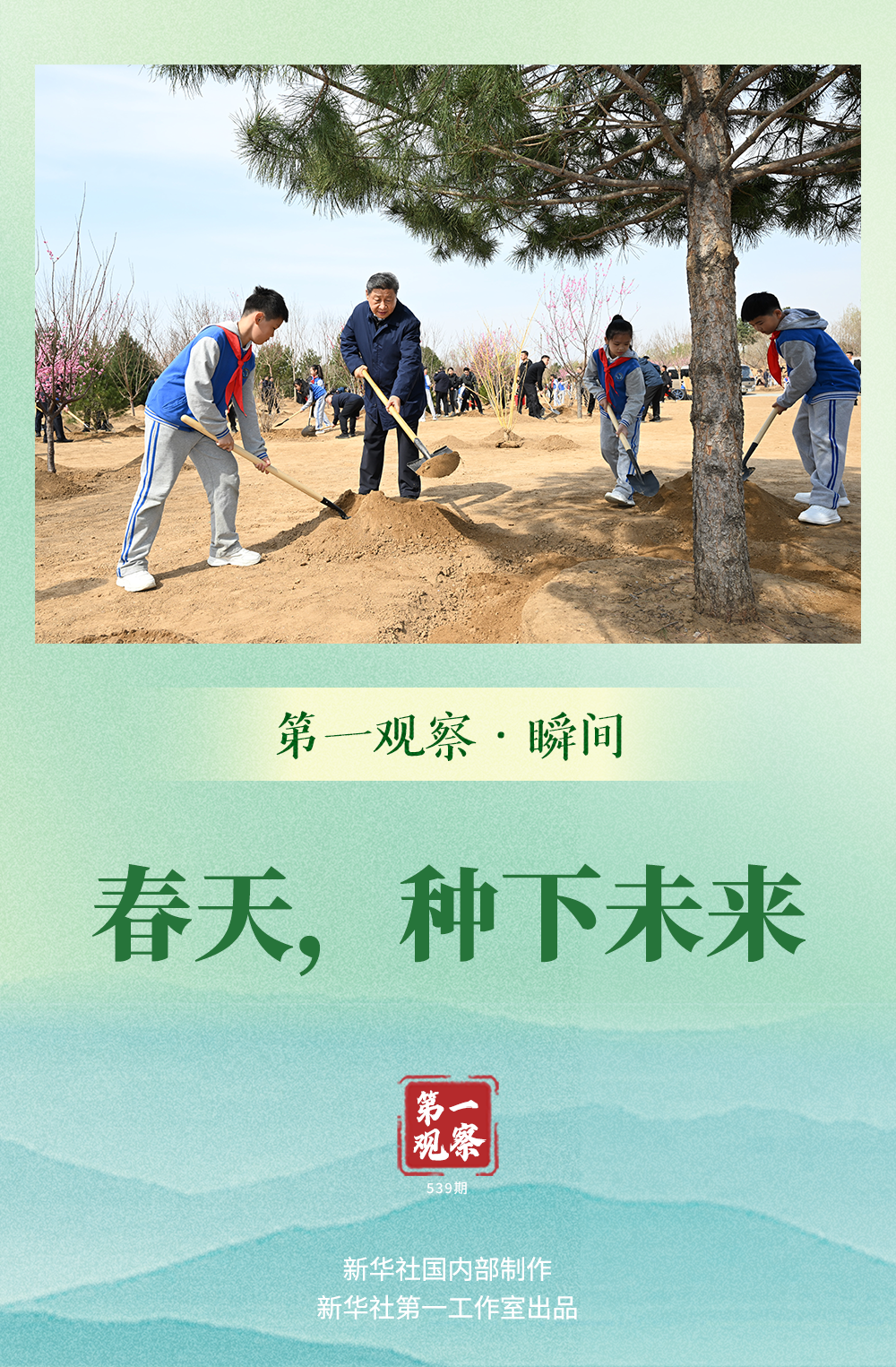 今天種下新綠,小小樹苗將長成參天大樹、連片成林,祖國大地綠意盎然、生機勃發(fā)。今天播撒希望,孩子們終將成為社會發(fā)展的棟梁之才,強國建設(shè)、民族復(fù)興更有接續(xù)奮斗的力量。