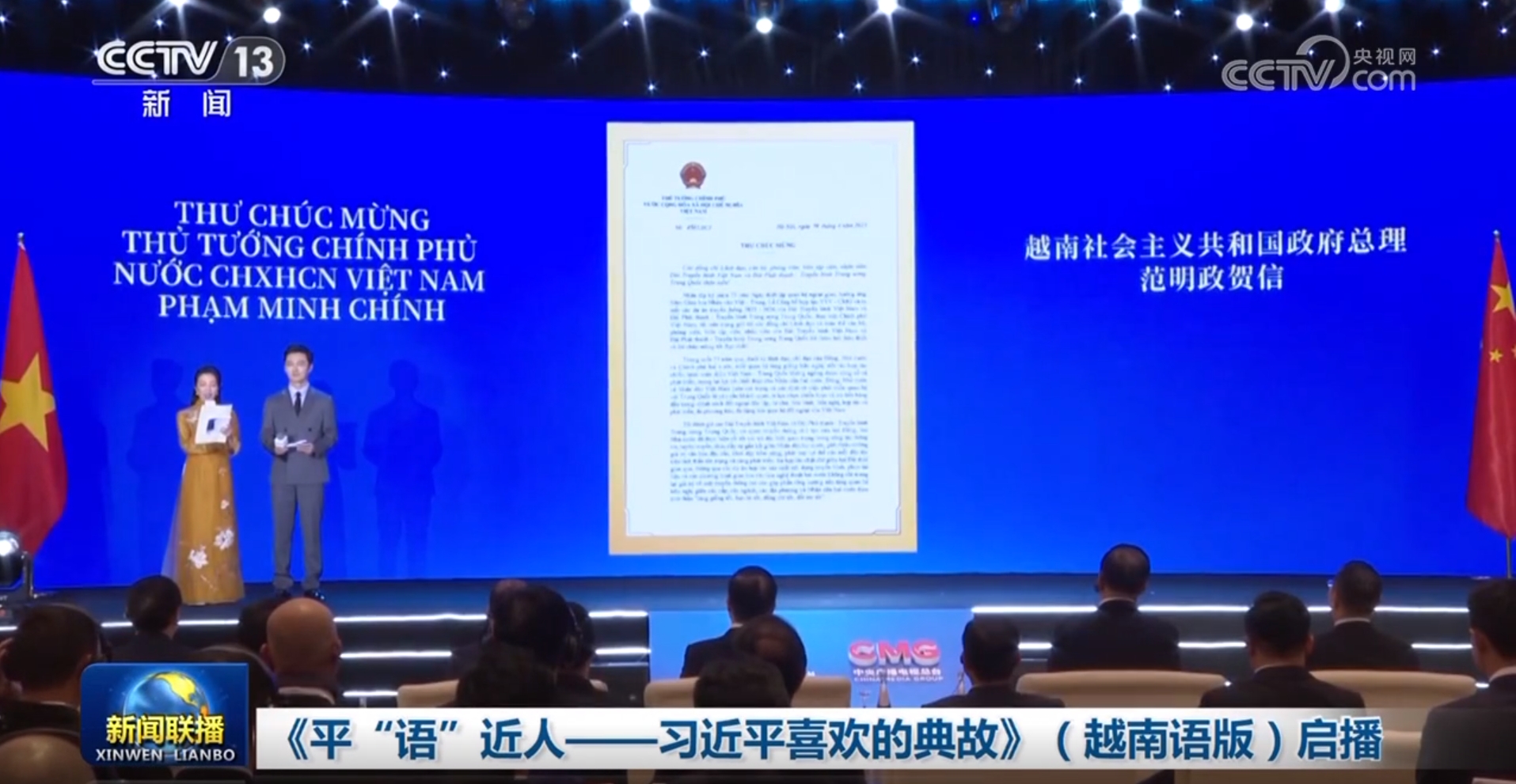 在中共中央總書記、國家主席習(xí)近平對越南進行國事訪問之際,4月14日,由中國中央廣播電視總臺制作的《平“語”近人——習(xí)近平喜歡的典故》(越南語版)在越南啟播。慶祝中越建交75周年人文交流活動同日在河內(nèi)舉行。越南總理范明政致賀信,對節(jié)目播出和活動成功舉辦表示祝賀。