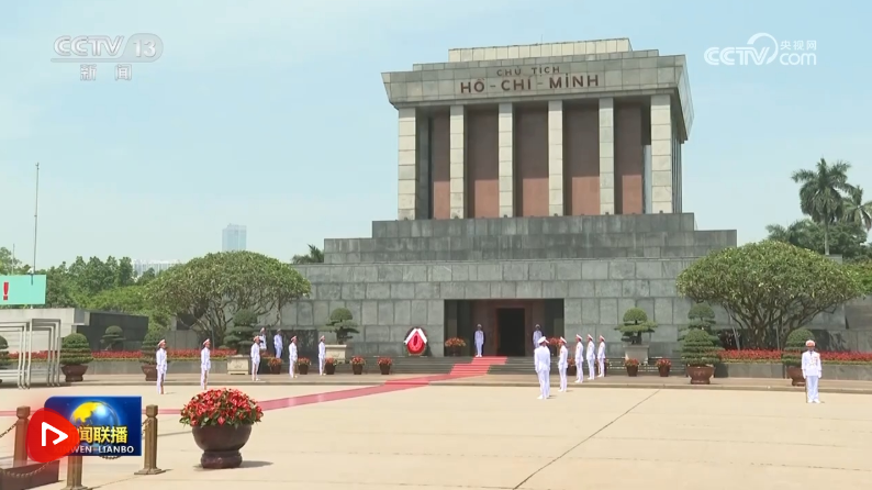 4月15日上午,在越共中央總書記蘇林陪同下,中共中央總書記、國家主席習近平瞻仰胡志明陵并敬獻花圈。