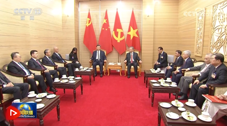 習近平指出,這次訪問時間雖短,但活動豐富、成果豐碩。雙方重申共同壯大世界社會主義事業(yè)的政治意愿,都期待朝著“六個更”總體目標全面推進兩國戰(zhàn)略合作,都表示抵御外部風險挑戰(zhàn),維護地區(qū)和平穩(wěn)定和國際公平正義。我對中越關(guān)系發(fā)展前景充滿信心。雙方要全面落實這次訪問成果,持續(xù)推進中越命運共同體建設。