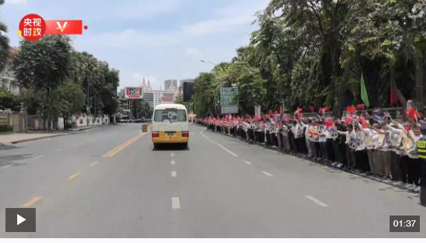 當(dāng)?shù)貢r(shí)間4月17日上午,國(guó)家主席習(xí)近平抵達(dá)柬埔寨首都金邊??偱_(tái)隨團(tuán)時(shí)政記者跟隨車(chē)隊(duì)獨(dú)家記錄金邊萬(wàn)人歡迎盛況。