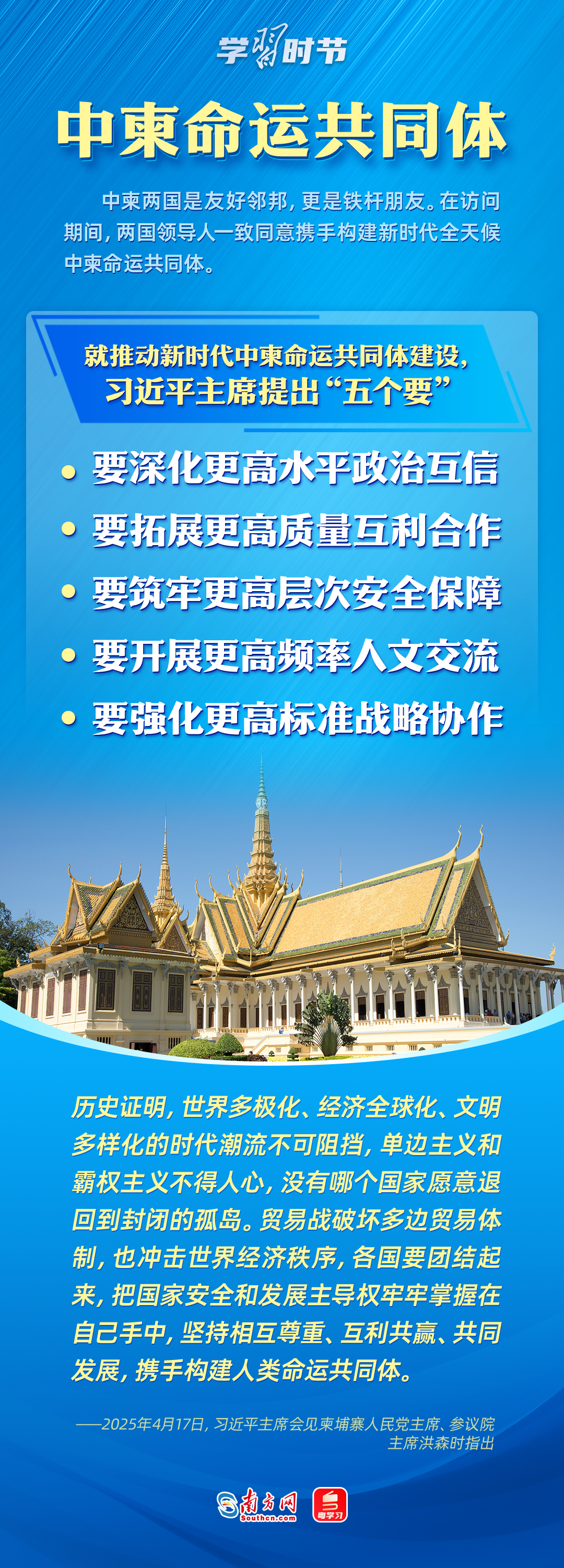 日前,中央周邊工作會議召開,強調要聚焦構建周邊命運共同體,努力開創(chuàng)周邊工作新局面。4月14日至18日,習近平主席出訪東南亞三國——越南、馬來西亞、柬埔寨。這是習近平主席今年首次出訪,對推動中國同三國關系發(fā)展具有重大意義,也為周邊命運共同體建設擘畫了新藍圖。