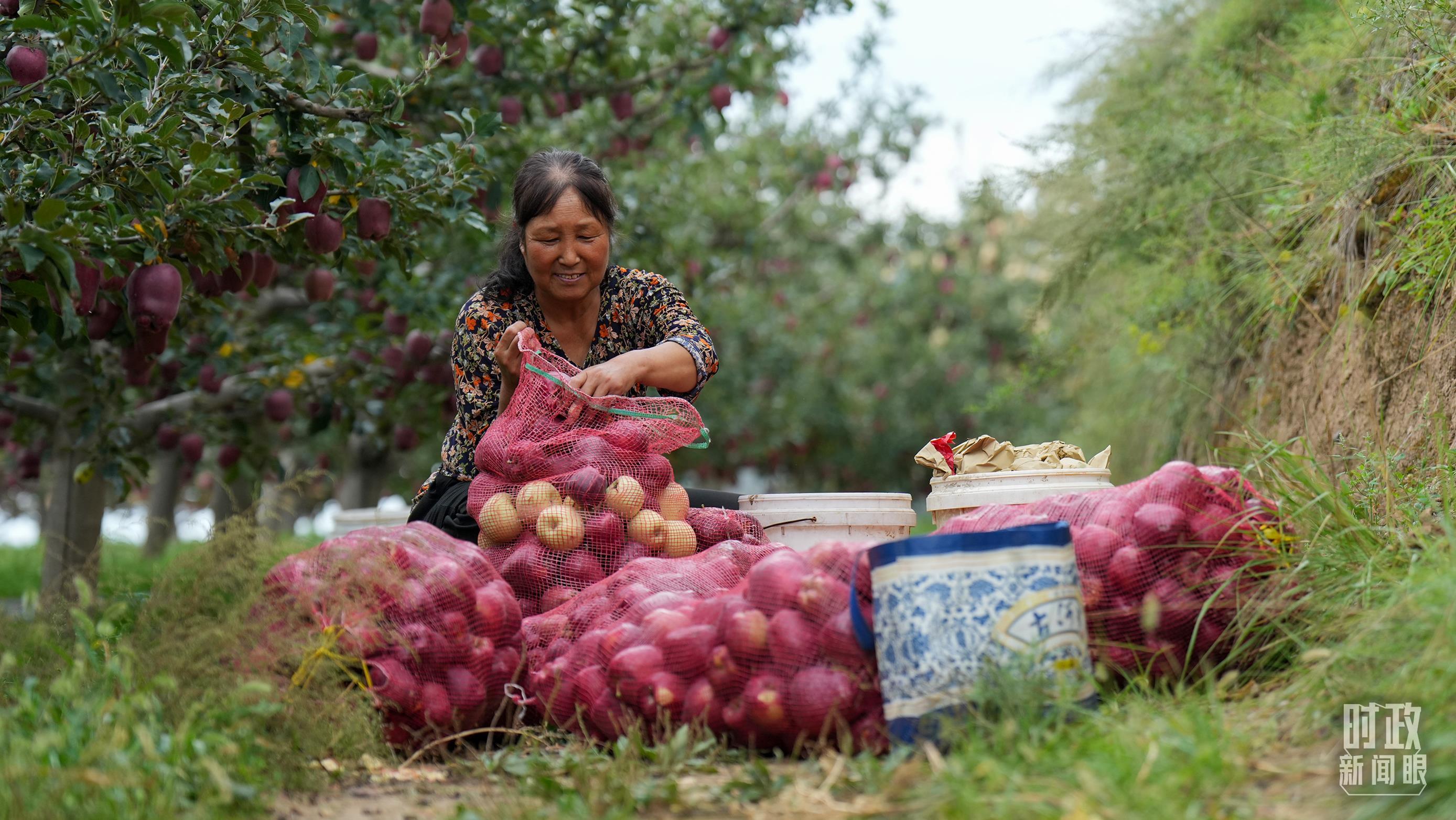 △甘肅天水市南山花牛蘋果基地帶動(dòng)當(dāng)?shù)卮迕駥?shí)現(xiàn)增收。(總臺(tái)記者李晉拍攝)
