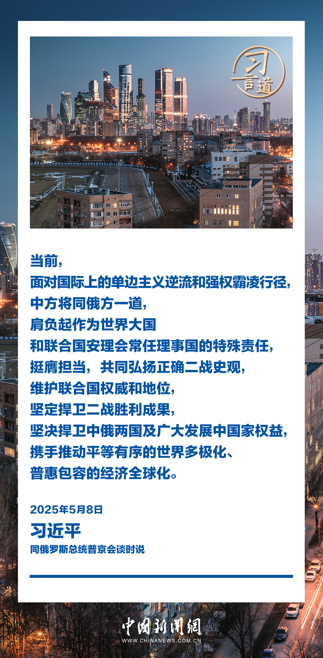 當?shù)貢r間5月8日,俄羅斯總統(tǒng)普京同中國國家主席習近平在莫斯科克里姆林宮舉行會談。習近平指出——