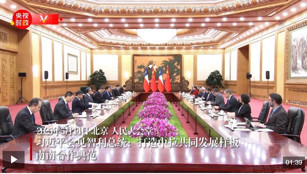 習近平指出,中國和智利要不斷豐富兩國全面戰(zhàn)略伙伴關系的時代內涵,打造中拉共同發(fā)展樣板、南南合作典范,共同促進人類和平和進步事業(yè)。