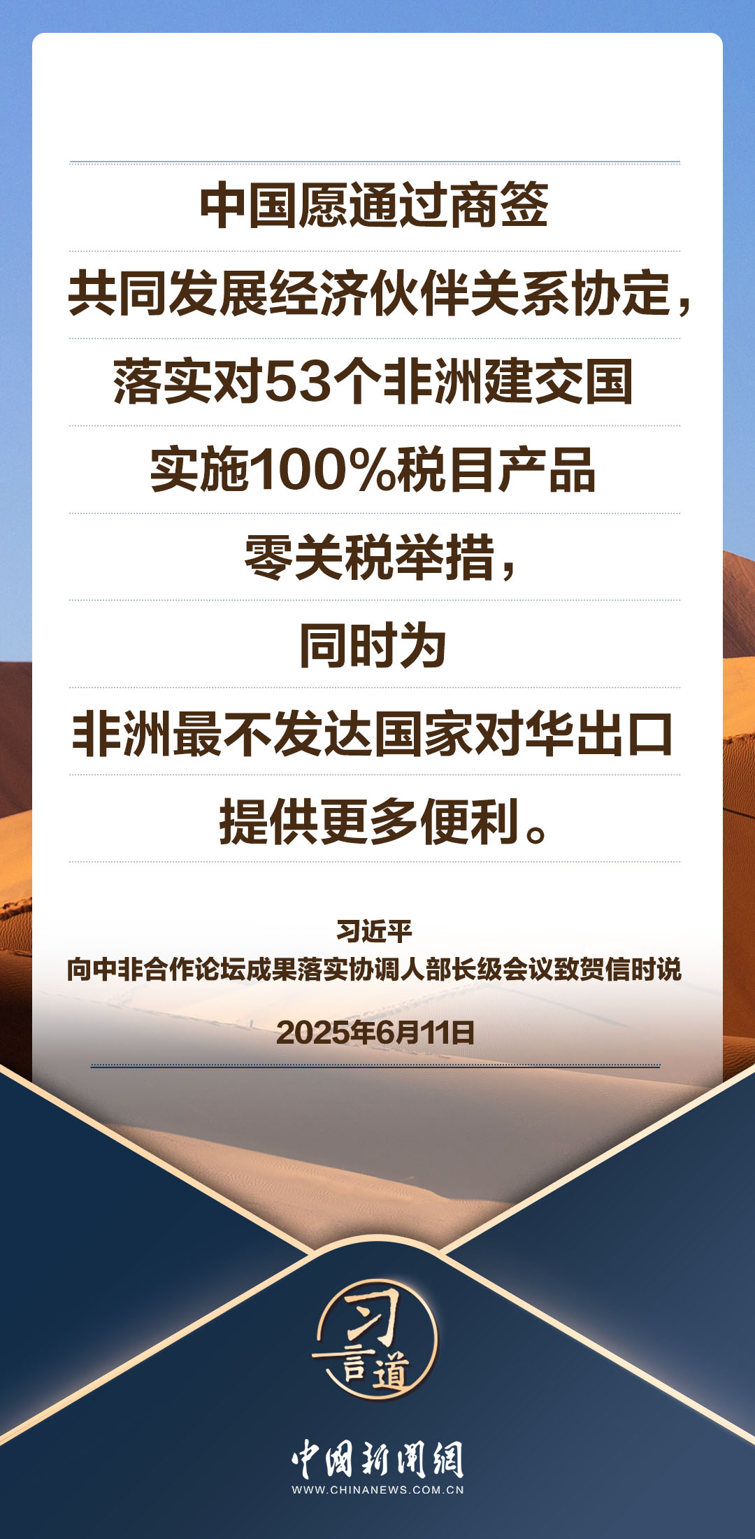 6月11日,國家主席習近平同剛果(布)總統(tǒng)薩蘇分別向中非合作論壇成果落實協(xié)調人部長級會議致賀信,對會議召開表示熱烈祝賀。習近平指出——