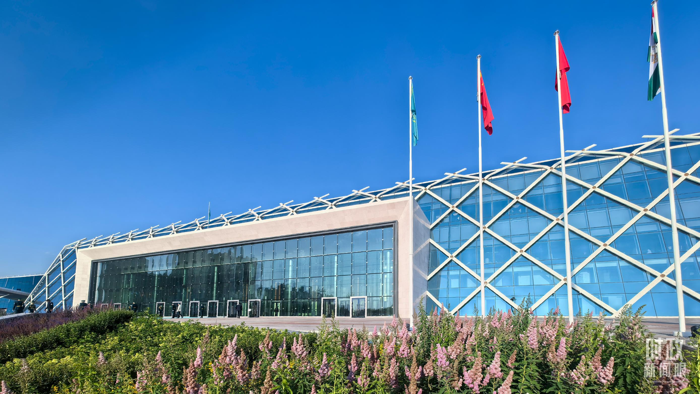 雙邊會(huì)見在這里舉行,這是中吉兩國(guó)國(guó)旗。(總臺(tái)央視記者劉琦拍攝)