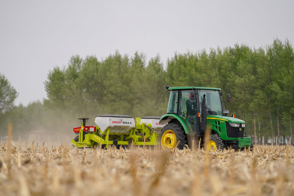 經(jīng)過多年試驗和推廣,東北逐步形成以秸稈覆蓋、少耕免耕為特點的吉林“梨樹模式”等多種行之有效的保護(hù)性耕作模式。這是2020年5月7日,吉林省四平市梨樹縣的農(nóng)民駕駛免耕播種機(jī)播種玉米。