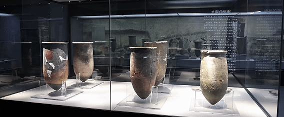 “這是一件出土于安徽蒙城新石器時(shí)代尉遲寺遺址的大口陶尊,距今大約4800年?!敝v解員指著一件陶器展品,“它的特別之處是器物上有著刻畫符號,分別是‘日’‘月’‘山’形。抽象的表達(dá)和組合,已經(jīng)超越了簡單的圖畫,使我們看到了漢字的雛形?!?/p>