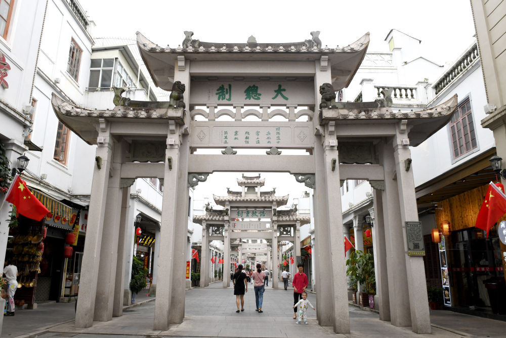 以牌坊街為文化地標(biāo)的潮州古城至今保持著“外曲內(nèi)方,四橫三縱”的宋代時街區(qū)格局。23座古牌坊連接起51條古街巷,商鋪林立,古色古香。