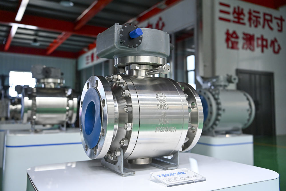 這是7月7日在陽泉閥門股份有限公司裝配成品車間拍攝的不銹鋼燃氣球閥。