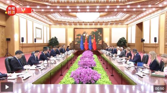7月24日上午,國家主席習(xí)近平在北京人民大會(huì)堂會(huì)見來華舉行第二十五次中國-歐盟領(lǐng)導(dǎo)人會(huì)晤的歐洲理事會(huì)主席科斯塔和歐盟委員會(huì)主席馮德萊恩。