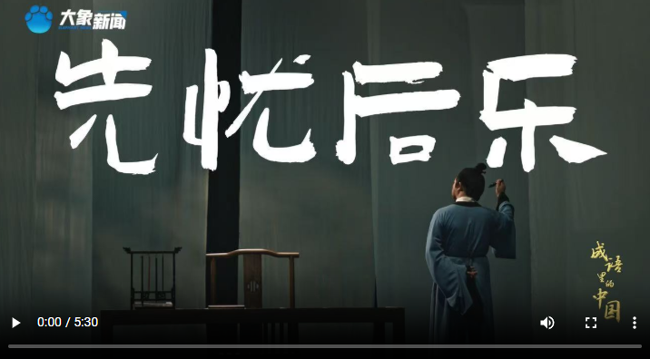 《文脈華章|成語里的中國:先憂后樂》詳細解讀“先天下之憂而憂,后天下之樂而樂”的淵源、內(nèi)涵、時代意義,我們一起感悟總書記反復強調(diào)這句話的深意。