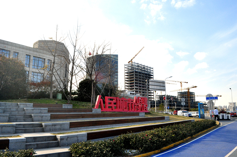 △上海街頭“人民城市人民建,人民城市為人民”的立體景觀字。