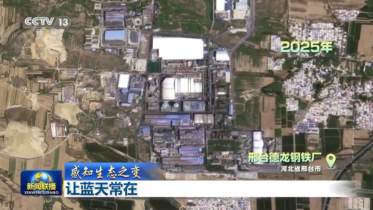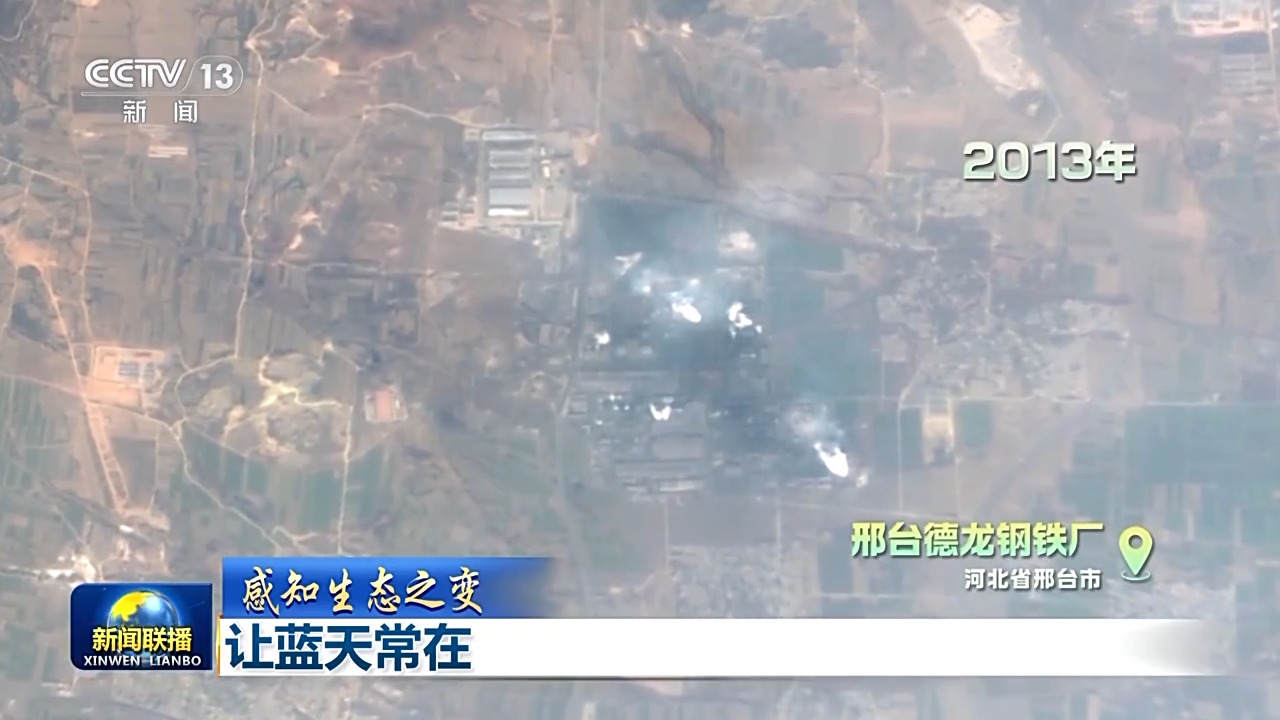 這是當(dāng)時(shí),環(huán)境監(jiān)測衛(wèi)星拍到的德龍鋼鐵廠,霧霾最嚴(yán)重的時(shí)候幾乎看不出廠區(qū)輪廓。而如今,卻是清晰可見,綠意蔥蔥。