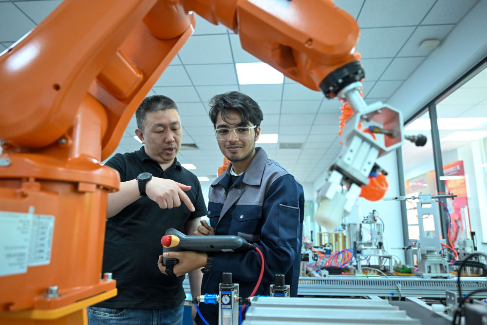 2018年7月,由天津與巴基斯坦合作共建的巴基斯坦魯班工坊正式揭牌,迄今已累計培訓1000余人次。2024年9月,搭乘魯班工坊的機遇快車,成績優(yōu)異的穆杉獲得獎學金,到天津求學。