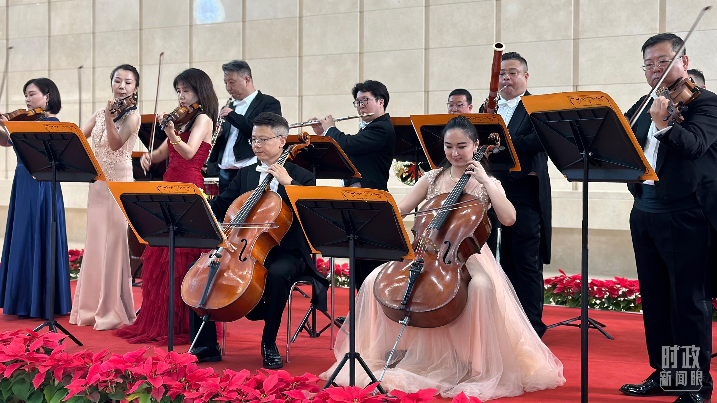 天津交響樂團演奏與會各國知名樂曲。(總臺央視記者盧心雨拍攝)