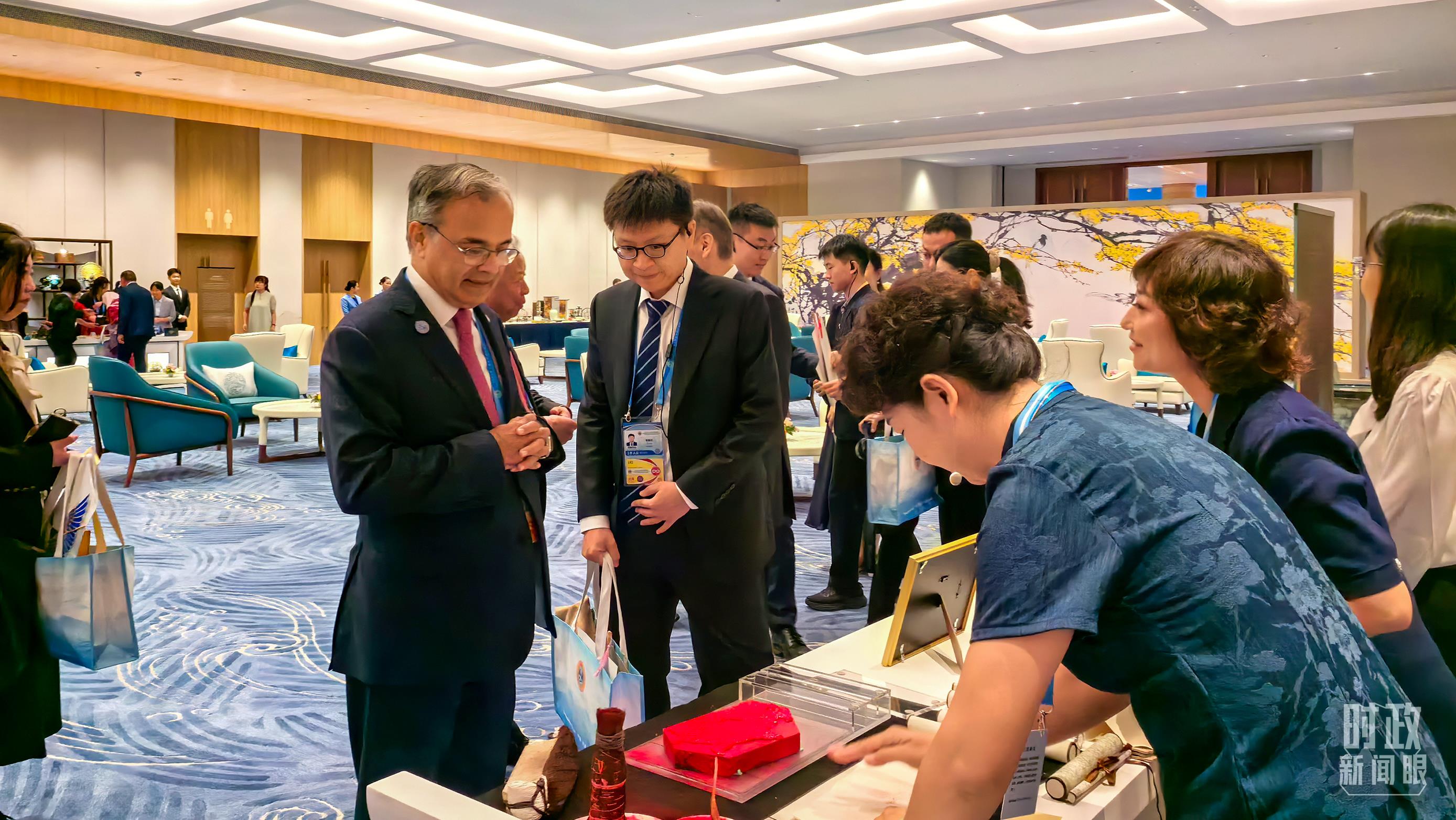 國際貴賓參觀天津非物質(zhì)文化遺產(chǎn)展示。(總臺央視記者王子杭、姚瑤拍攝)