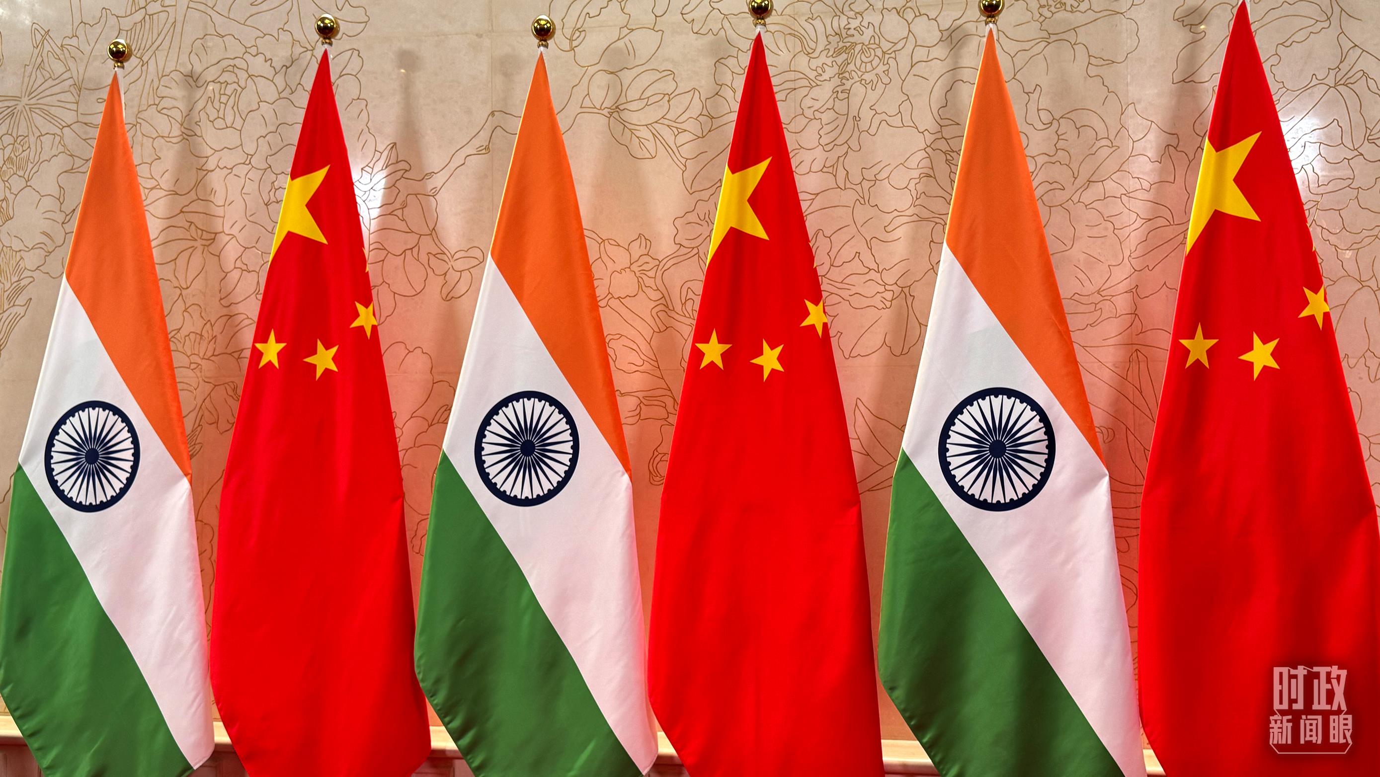 會見廳外擺放的中印兩國國旗。(總臺央視記者蔣碩拍攝)