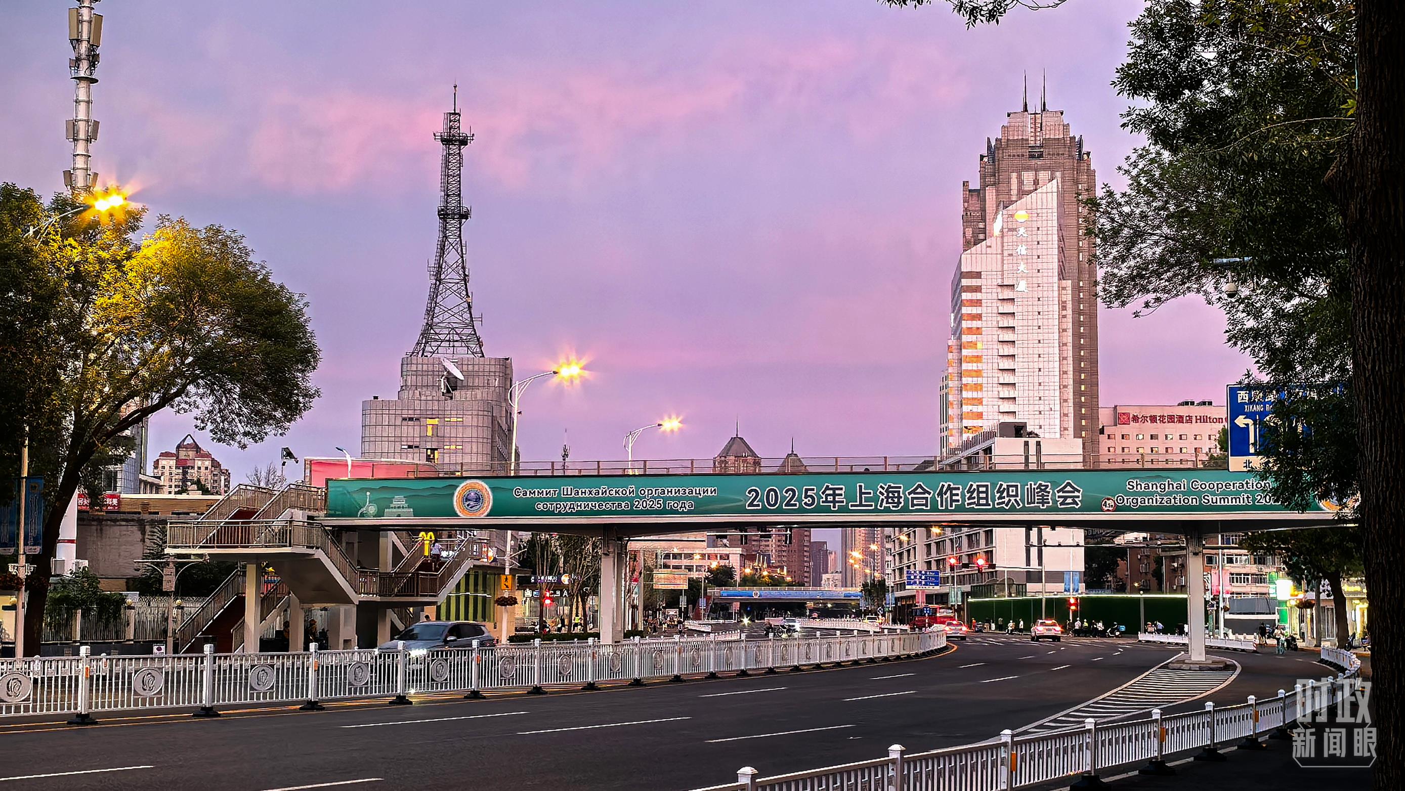 天津街頭的上合峰會條幅。(總臺記者孫強拍攝)