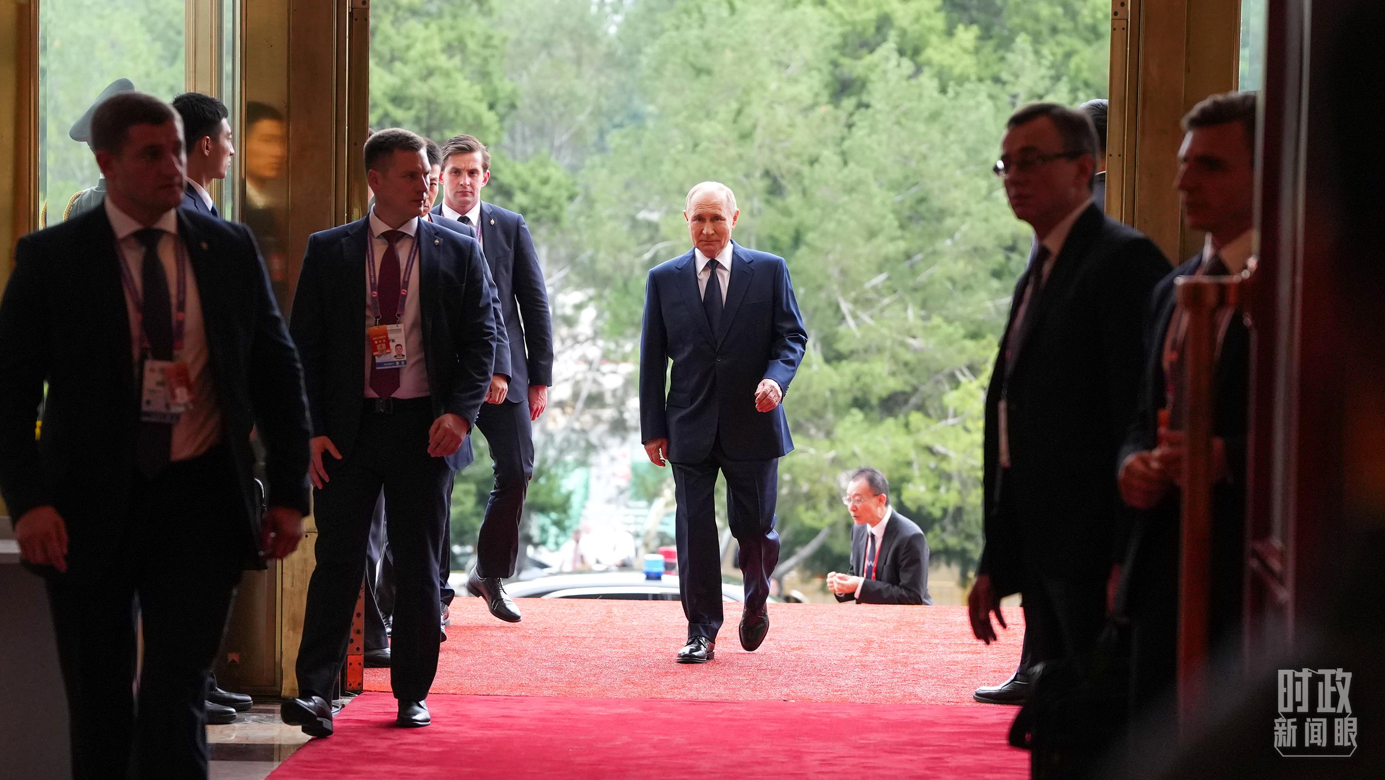 △普京總統(tǒng)步入人民大會(huì)堂。(總臺(tái)記者李晉拍攝)