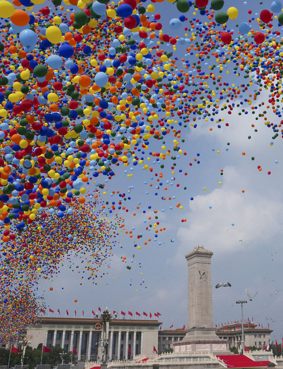 2025年9月3日,紀念中國人民抗日戰(zhàn)爭暨世界反法西斯戰(zhàn)爭勝利80周年大會在北京隆重舉行。這是紀念大會現(xiàn)場放飛氣球和鴿子。新華社記者 牟宇 攝