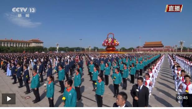 獨(dú)家視頻丨向人民英雄敬獻(xiàn)花籃儀式正式開始 全場高唱國歌