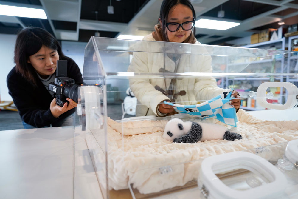 2024年11月20日,在位于四川省成都市的“熊貓工廠”總部,工作人員在為22日齡新生大熊貓幼崽高仿真玩偶產(chǎn)品拍攝短視頻。依托我國傳統(tǒng)非遺裘皮制作技藝,以不同年齡段的“和花”“萌蘭”“香香”“福寶”等“網(wǎng)紅”大熊貓為原型,運用3D建模等技術開發(fā)出高仿真、超仿真玩偶,當?shù)仄髽I(yè)已在全球50多個國家和地區(qū)累計銷售超過5萬只定制仿真大熊貓,也在短短幾年內成長為年營收破千萬元的企業(yè)。