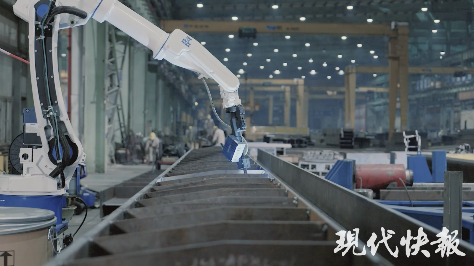 智能化浪潮給邱明輝和他的團隊帶來新的調整。2013年,邱明輝所在工廠引進了一臺焊接機器人,安裝技術員開玩笑說:“機器人來了,你們就要下崗了?!辈环獾那衩鬏x跟機器人PK,結果是:機器人效率更高,他的焊縫質量更好?!叭藱C大戰(zhàn)”讓邱明輝意識到,改革勢在必行,焊接自動化將成為鋼結構從制造到智造的核心。